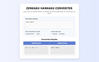ZENKAKU HANKAKU Converter adalah ekstensi untuk Chrome yang memudahkan konversi teks antara format Zenkaku (full-width) dan Hankaku (half-width). Ekstensi ini memungkinkan pengguna untuk mengubah karakter alfanumerik dan Katakana Jepang secara cepat dan efisien. Dengan antarmuka yang sederhana dan intuitif, pengguna dapat dengan mudah melihat hasil konversi secara langsung di bagian input dan output yang jelas.